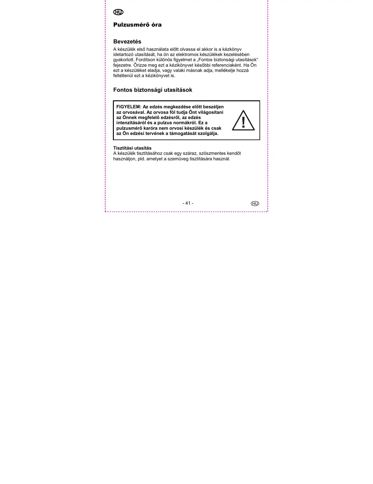 FIGYELEM: Az edzés megkezdése előtt beszéljen
