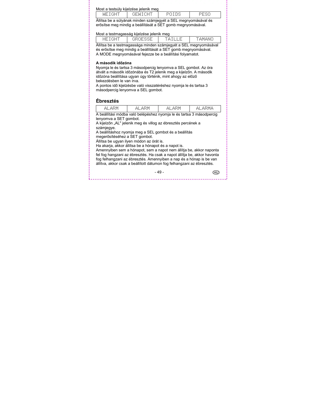 Állítsa be a testmagassága minden számjegyét a SEL megnyomásával