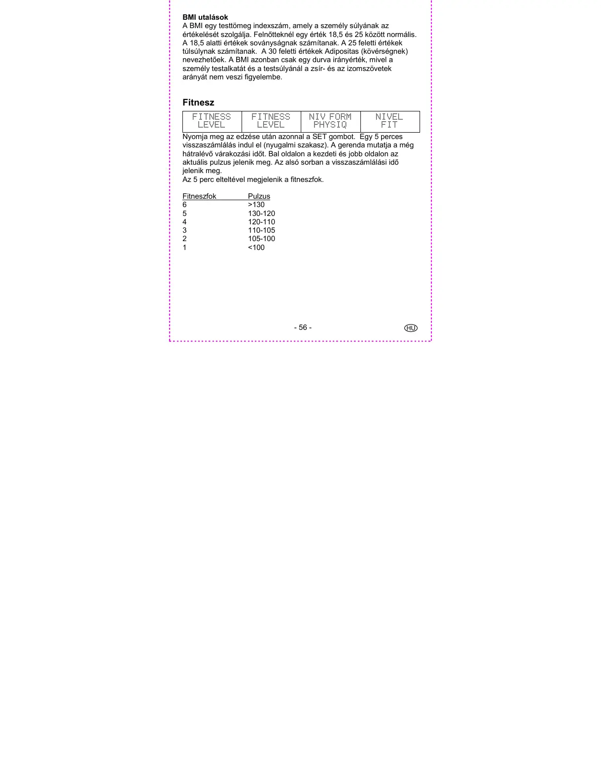 Nyomja meg az edzése után azonnal a SET gombot. Egy 5 perces