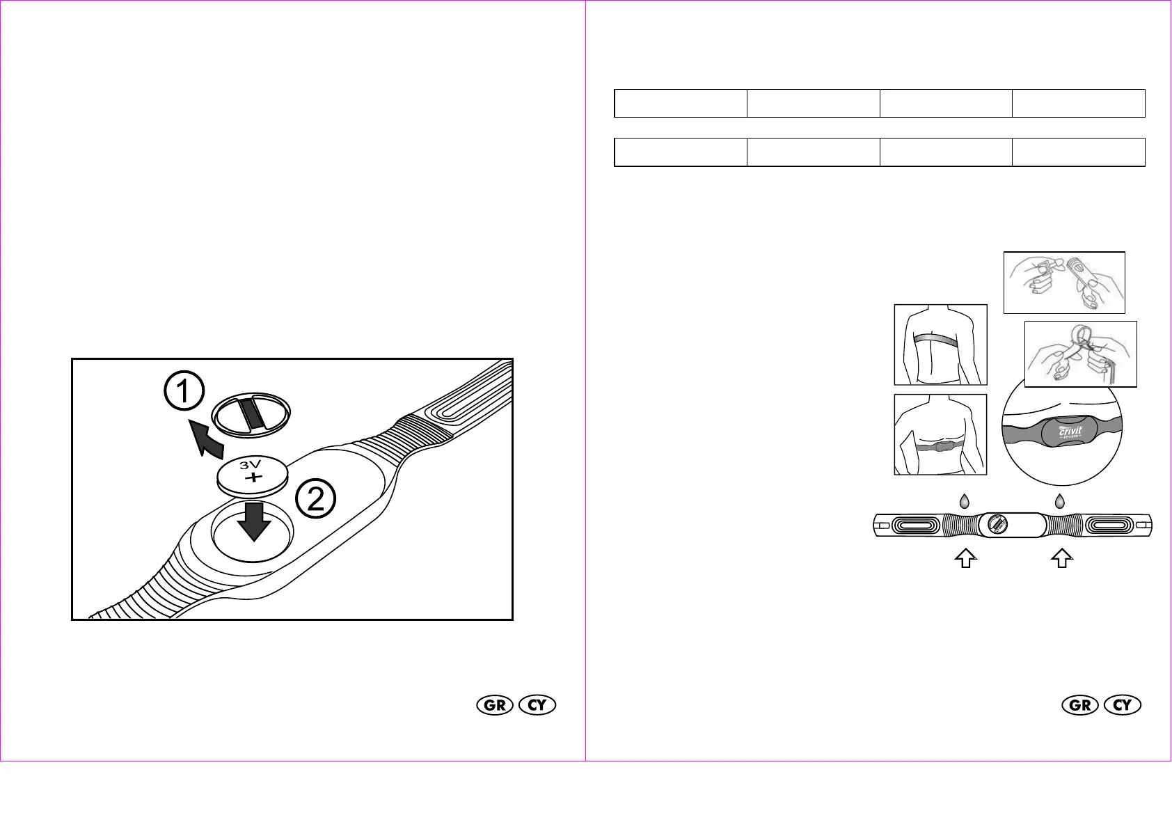 στήθους και τοποθετήστε µια 3V µπαταρία µε το (+) σύν προς τα πάνω.