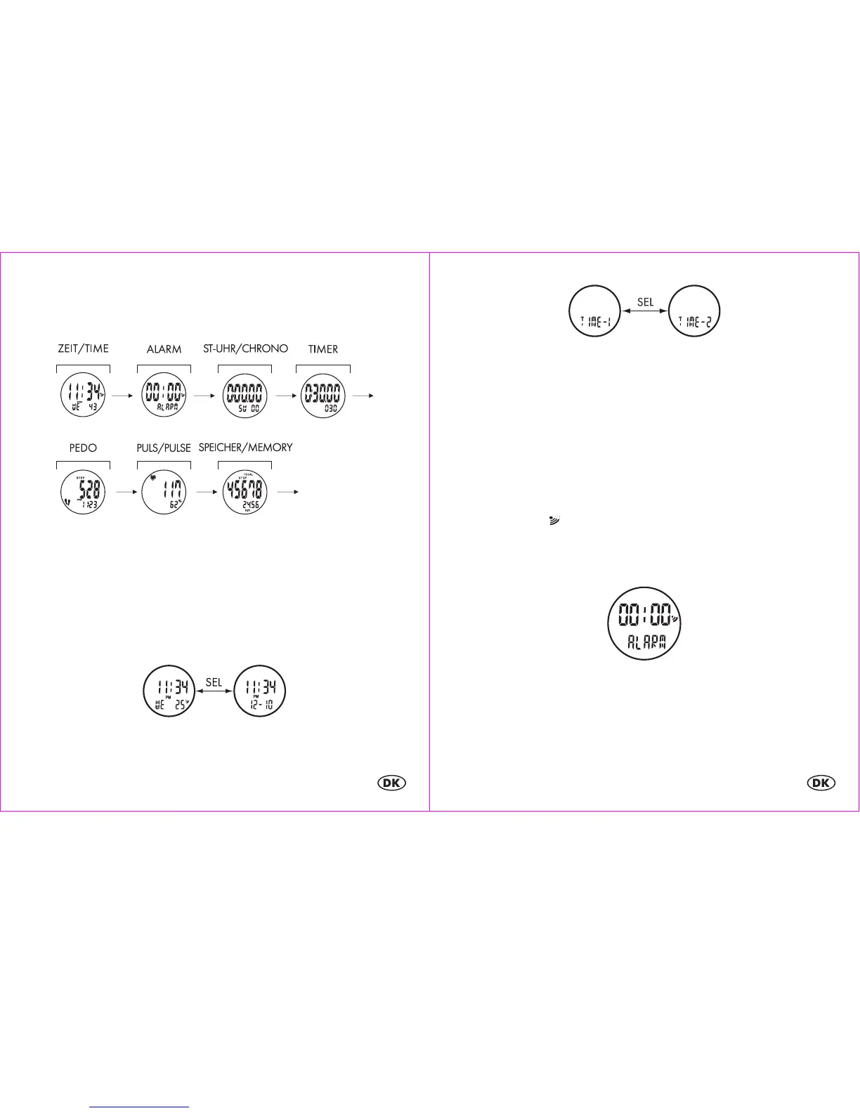 Ved tryk på SEL kan De fremkalde underfunktionerne i tidsmodus.