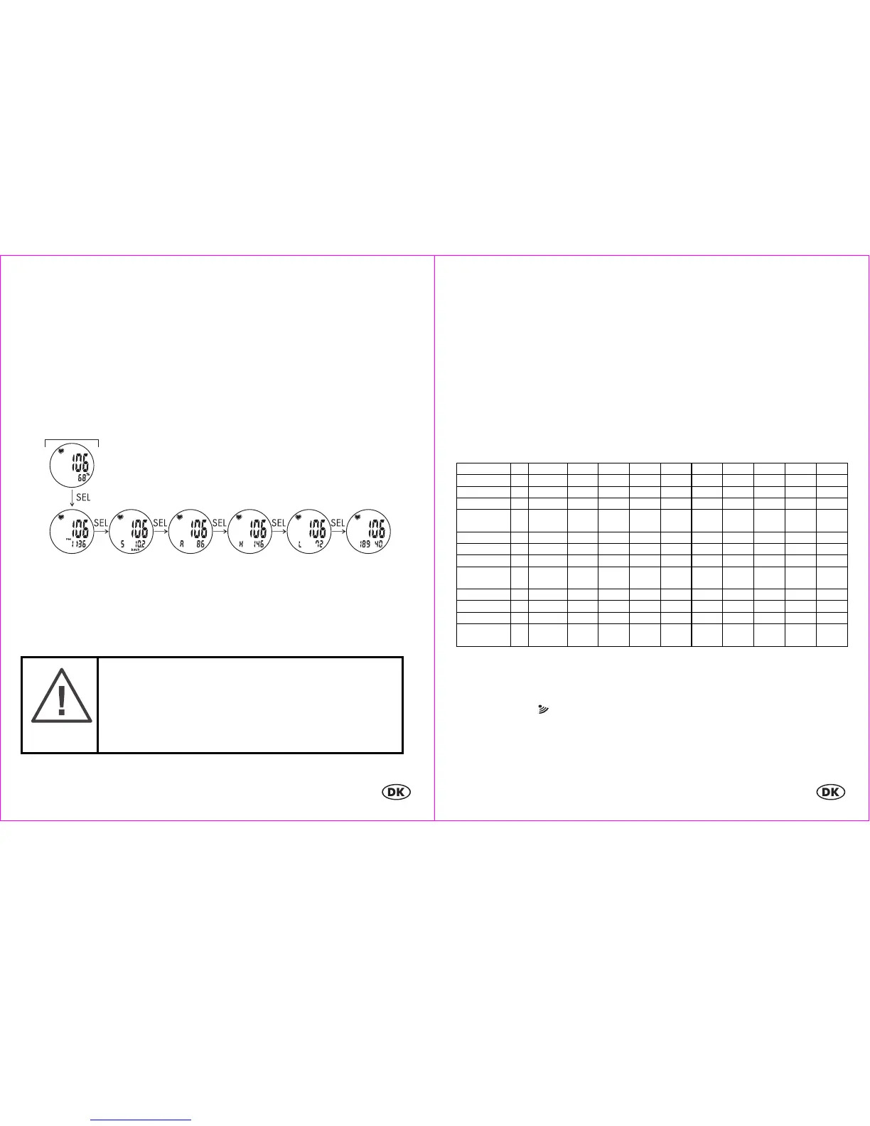 Ved tryk på SEL kan De fremkalde pulsmålerens underfunktioner.
