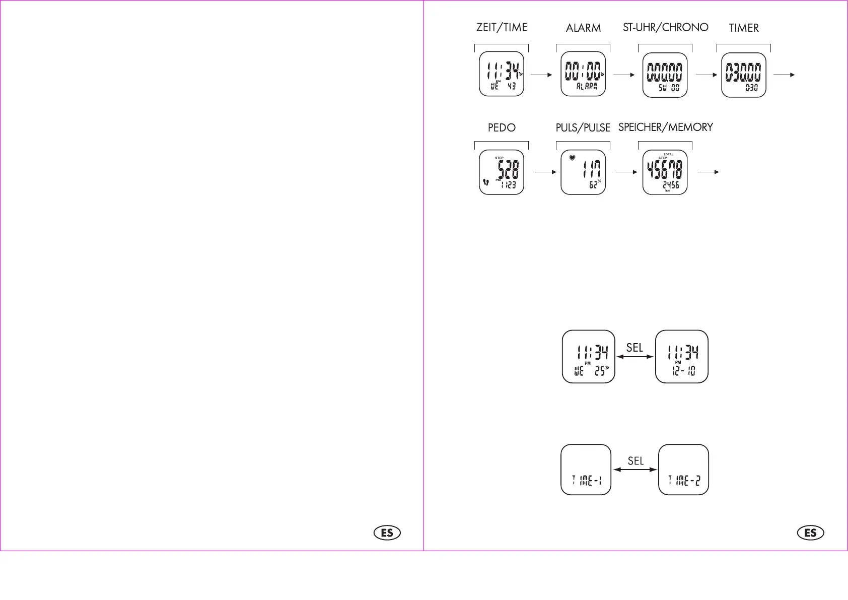 Presionando SEL puede llamar las sub-funciones del modo de la hora.