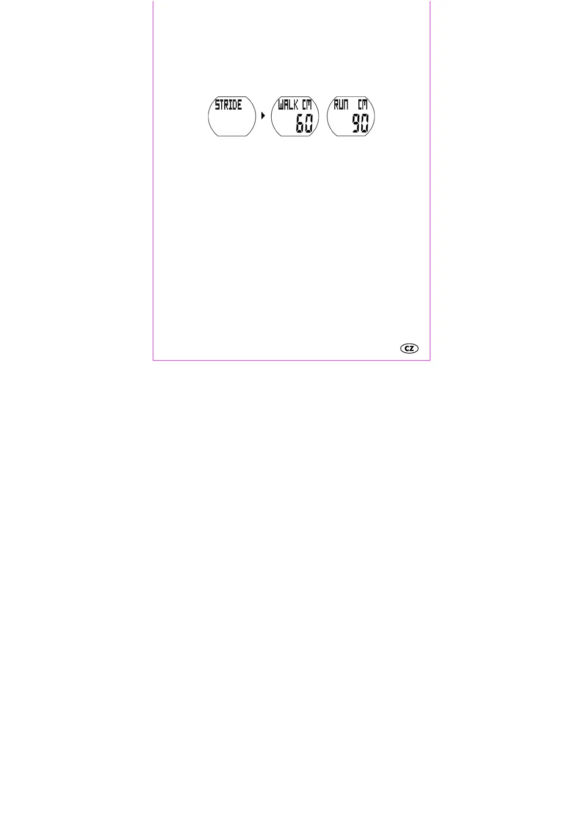 Zobrazí se displej kroku. Tlačítkem SET/LIGHT nastavte Vaši délku kroku při chůzi a