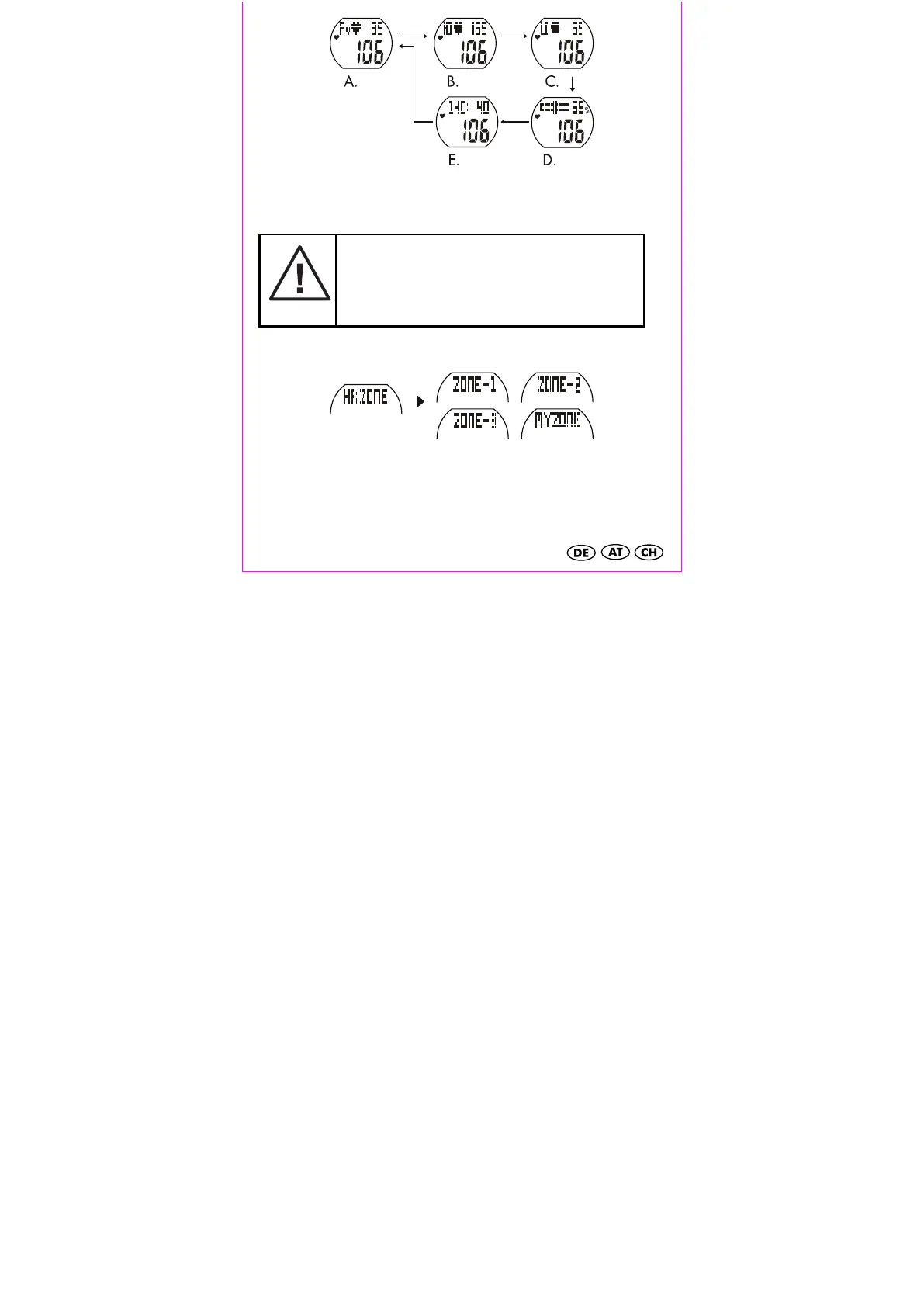 Wählen Sie mit Druck auf SET/LIGHT zwischen den voreingestellten Trainingszonen