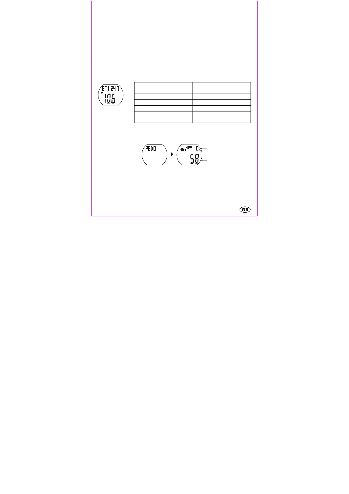 Press MODE repeatedly to select the pedometer function mode PEDO.