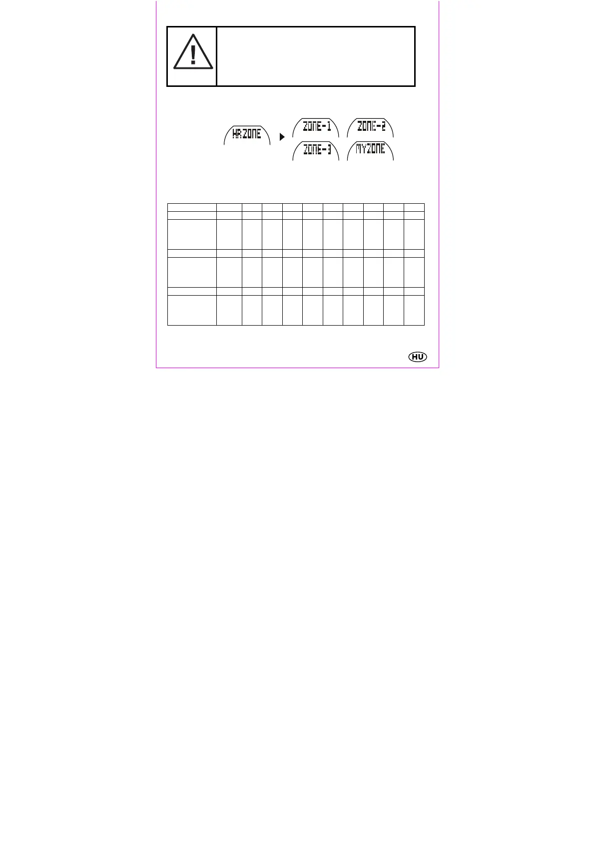 FIGYELEM: Az Önnek megfelelö cél-pulzustartományról