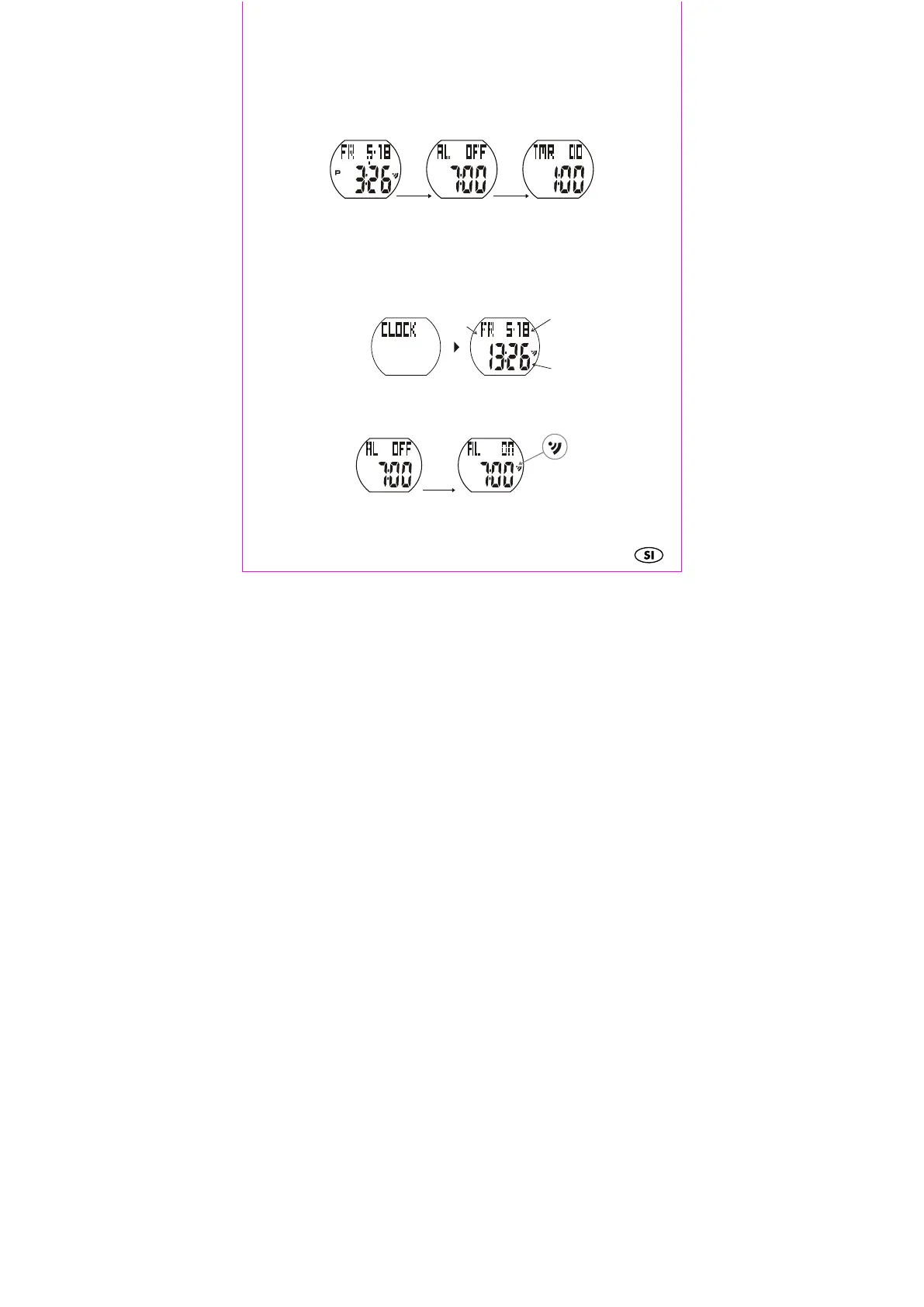 Pritisnite tipko SET v načinu alarma, da vključite, ali izključite alarm.