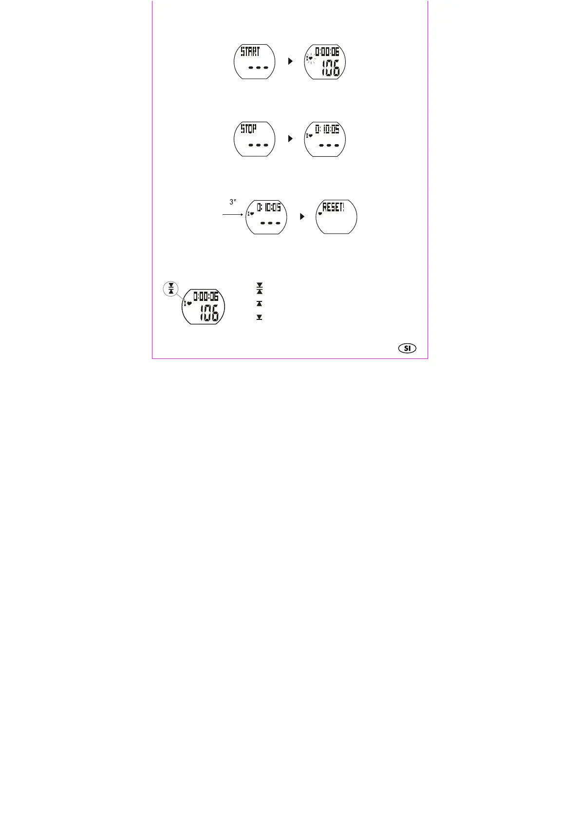 Pritisnite tipko SET, medtem ko ste v načinu vadbe, da začnete merjenje srčnega