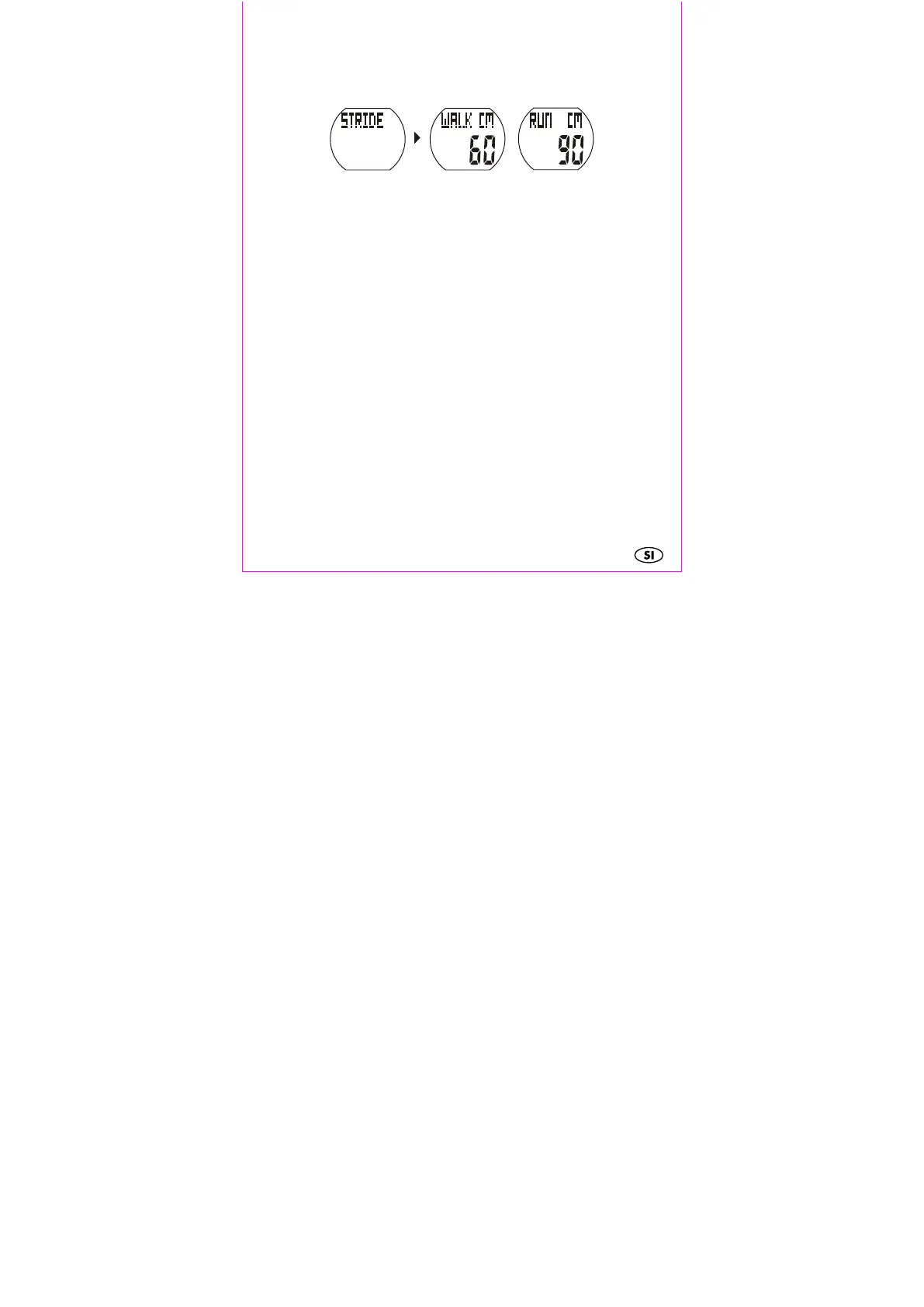 Na zaslonu se prikaže dolžina koraka. Nastavite svojo dolžino koraka za hojo in