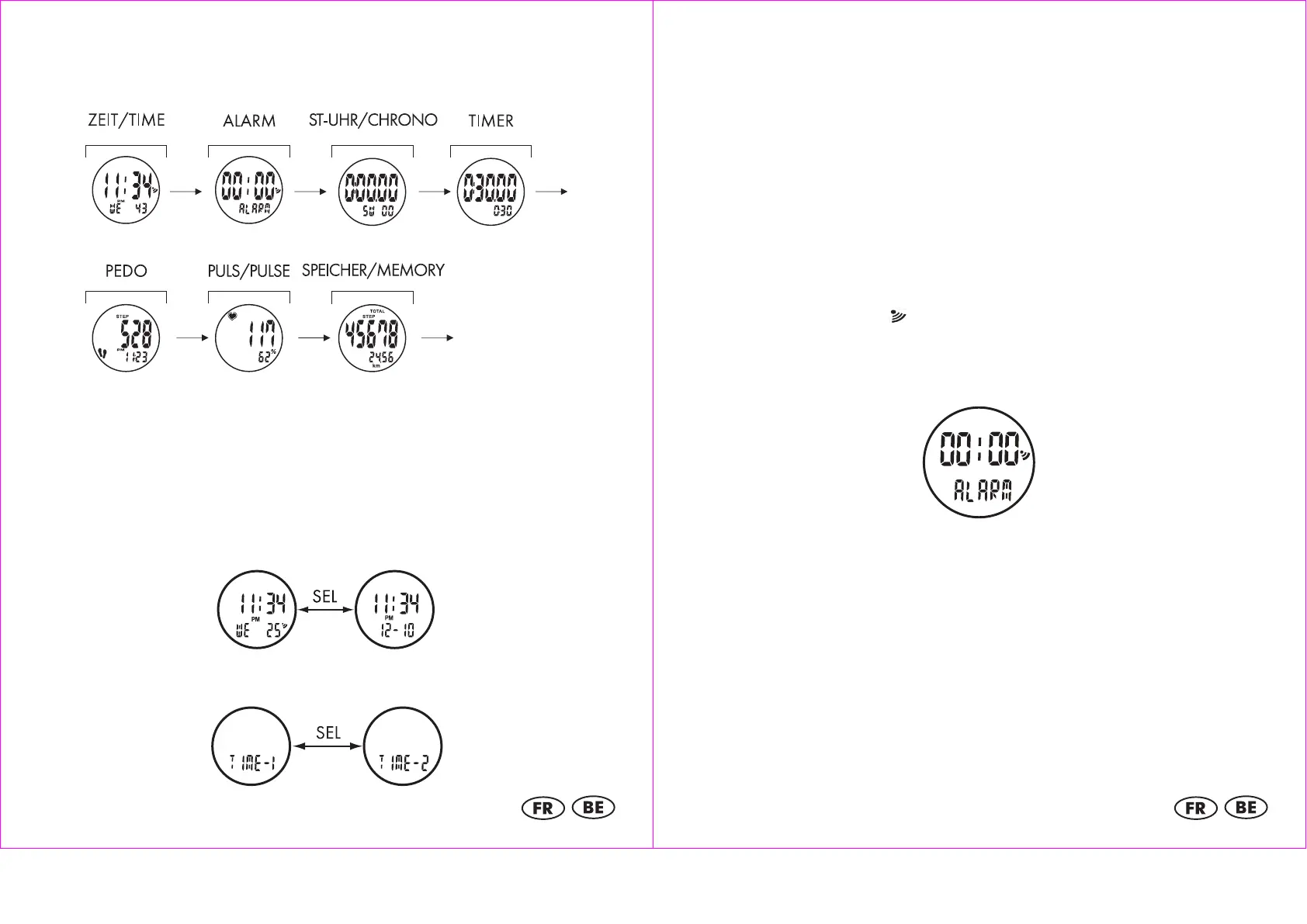 MODE. Les fonctions de votre montre sont dans l’ordre :