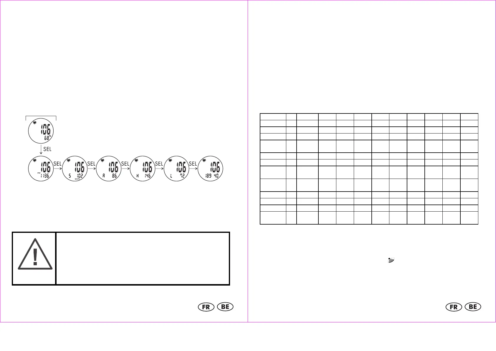 Remarque: Le cardiofréquencemètre ne fonctionne pas sans la sangle thoracique.