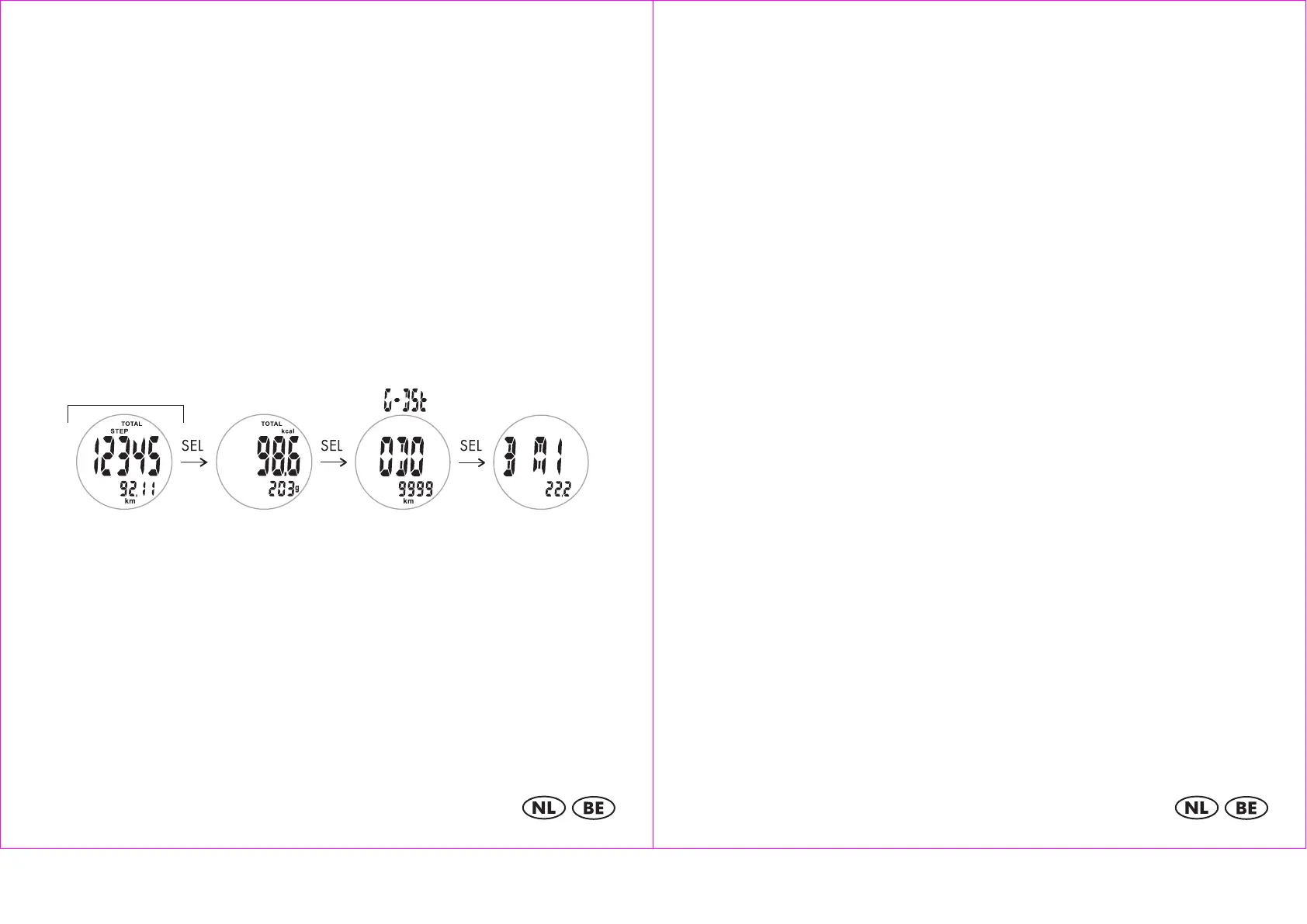 step/Total dist.) - Totale calorie-/Totale vetverbranding (Total Calories/Total Fat