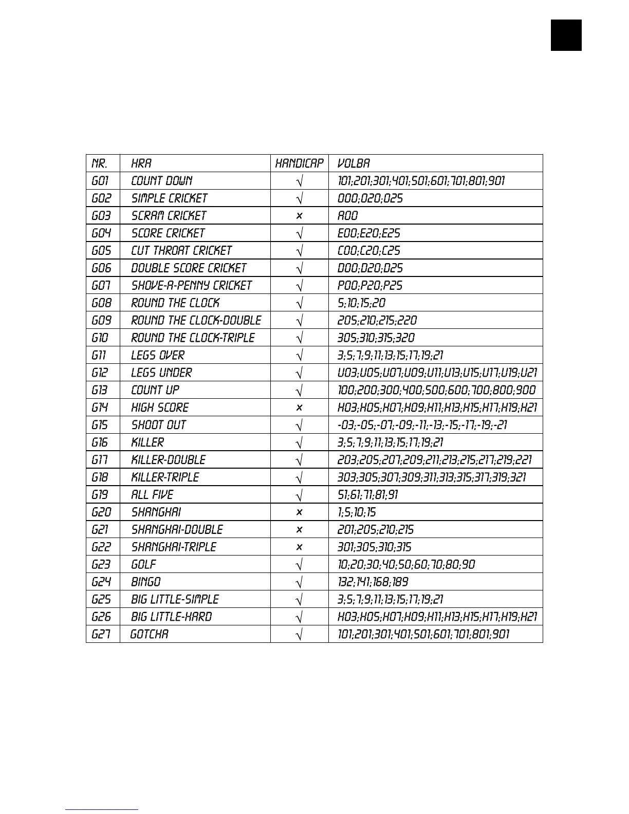 Crivit DS-1435 - Volba Hry a Listina Stupňů Obtížnosti (Tabulka 1)