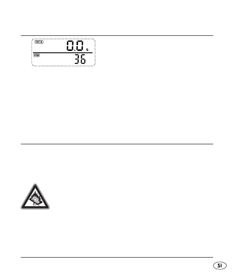 Za 3 sekunde pritiskajte tipko UP, število korakov, •
