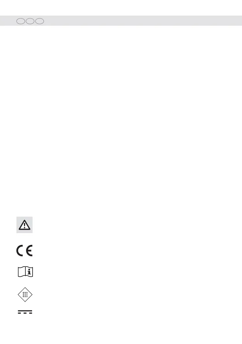 Schutzklasse III. Das Display wird mit Niedrig-Spannung über eine Batterie versorgt.