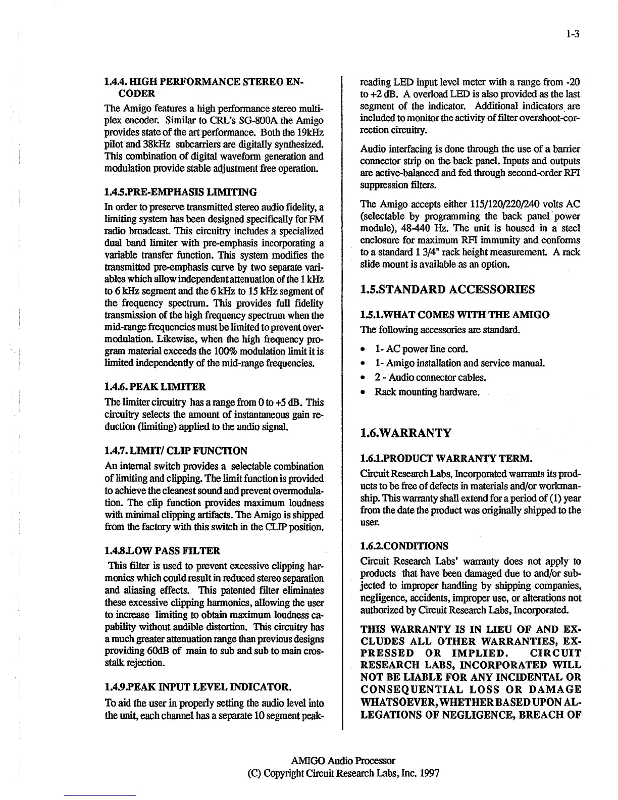 CRL Systems Amigo - Standard Accessories; Product Warranty