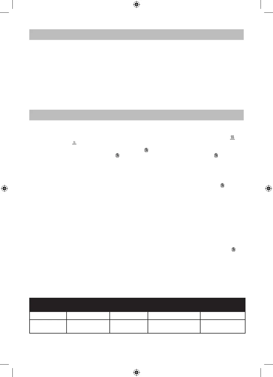 plotýnce nebo pod grilem. Prohlédněte si tabulku níže.