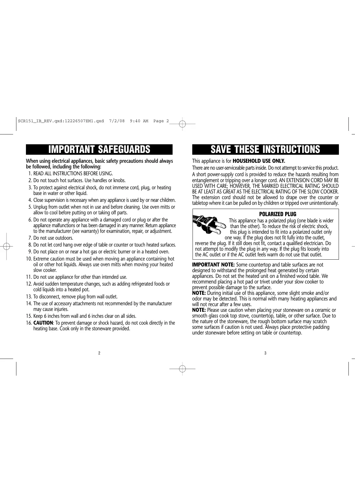 IMPORTANT SAFEGUARDS SAVE THESE INSTRUCTIONS