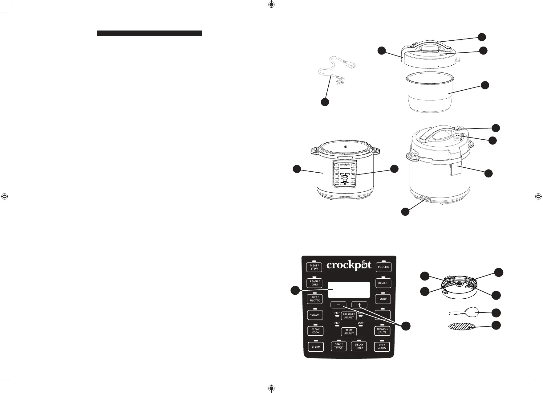 Crockpot CSC051X - Crockpot Express Multi-Cooker Components; Control Panel; Underside of Lid Components