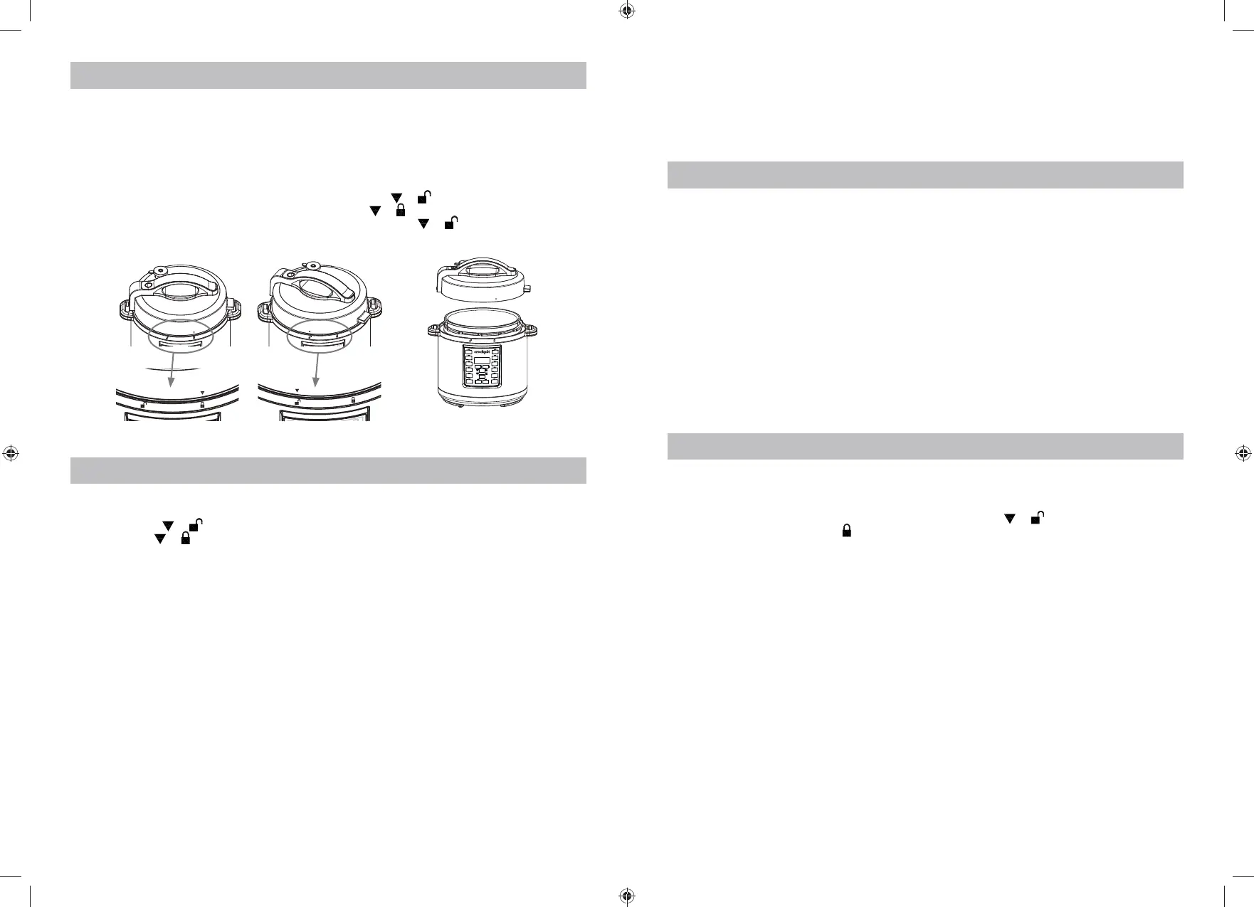 2. Helyezze rá a fedőt a multifőzőre, és igazítsa egy vonalba a következőket: és . A lezáráshoz forgassa az óra