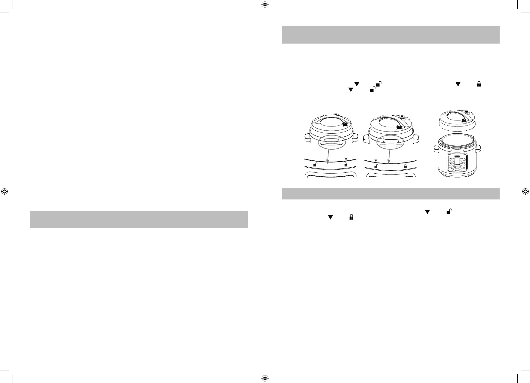 • Sæt låget på multicookeren, og ret ind efter . Drej mod urets retning for at låse, og ret ind efter . Drej med