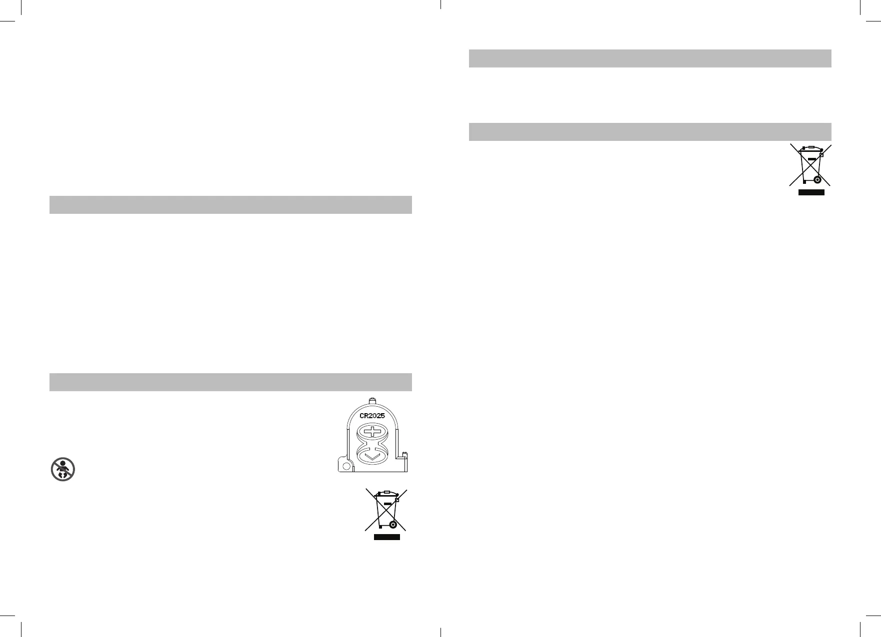 Always replace the battery with type CR2025 or equivalent. Do not use rechargeable batteries in