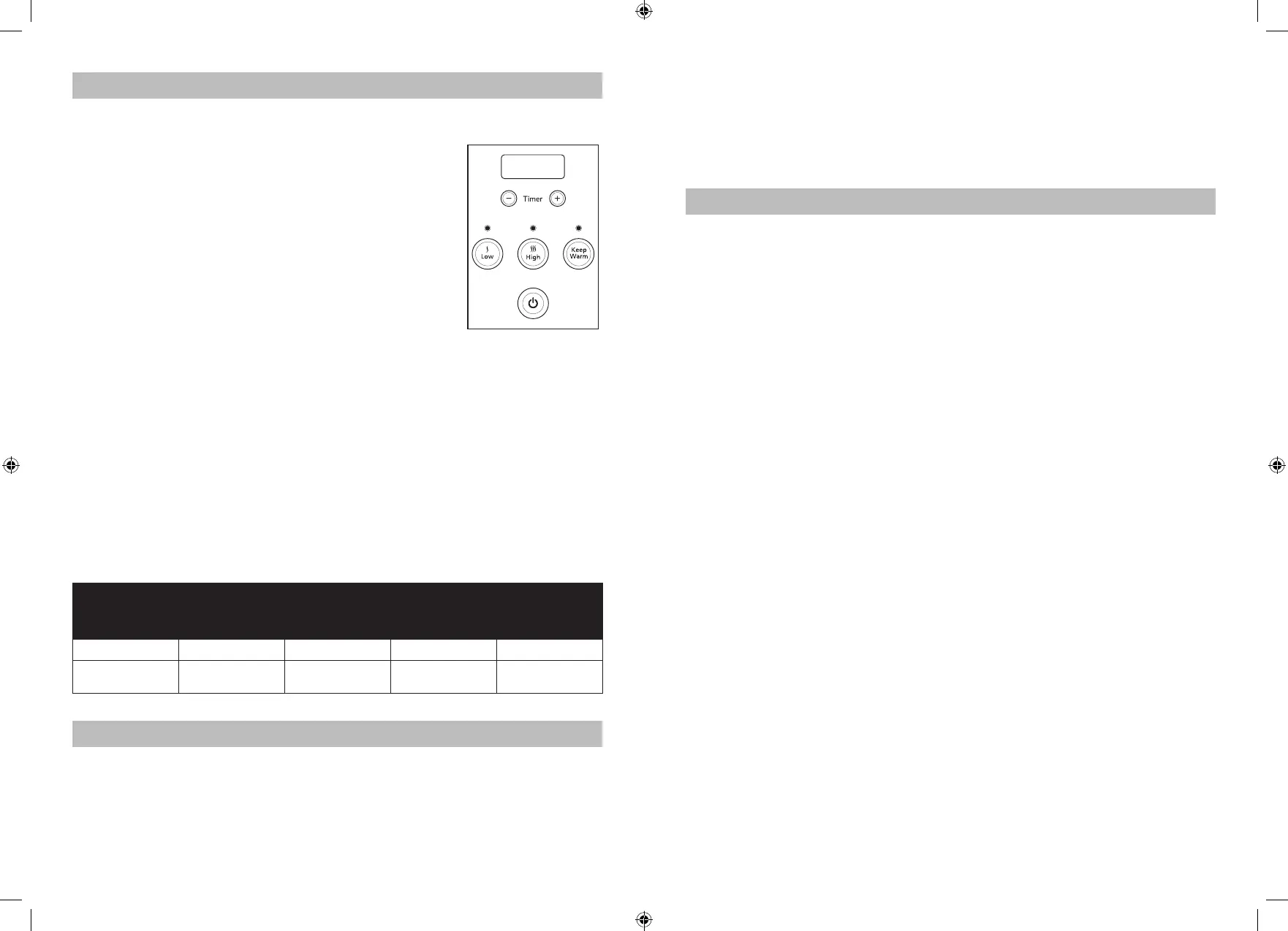 La minuterie affichera le temps écoulé depuis le début du mode MAINTIEN AU CHAUD, et s’éteindra au bout de six