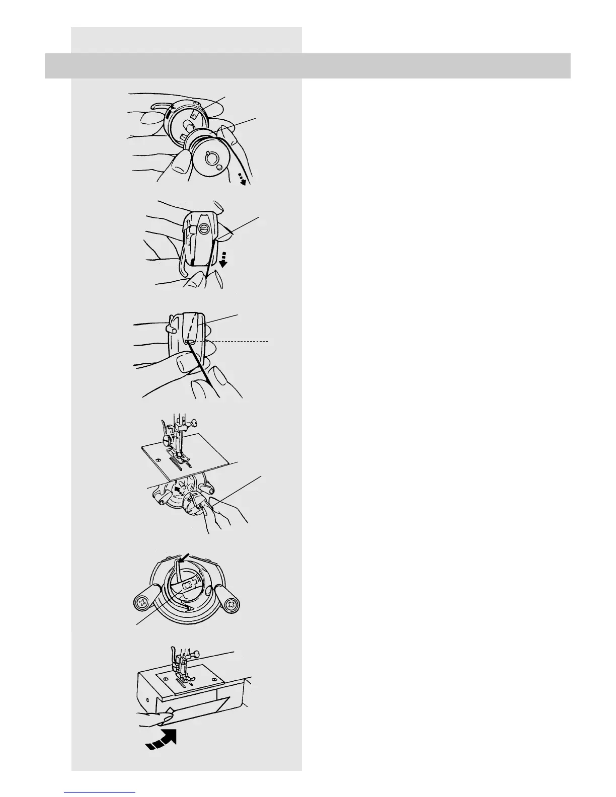 1. Keep the bobbin case in your left hand,