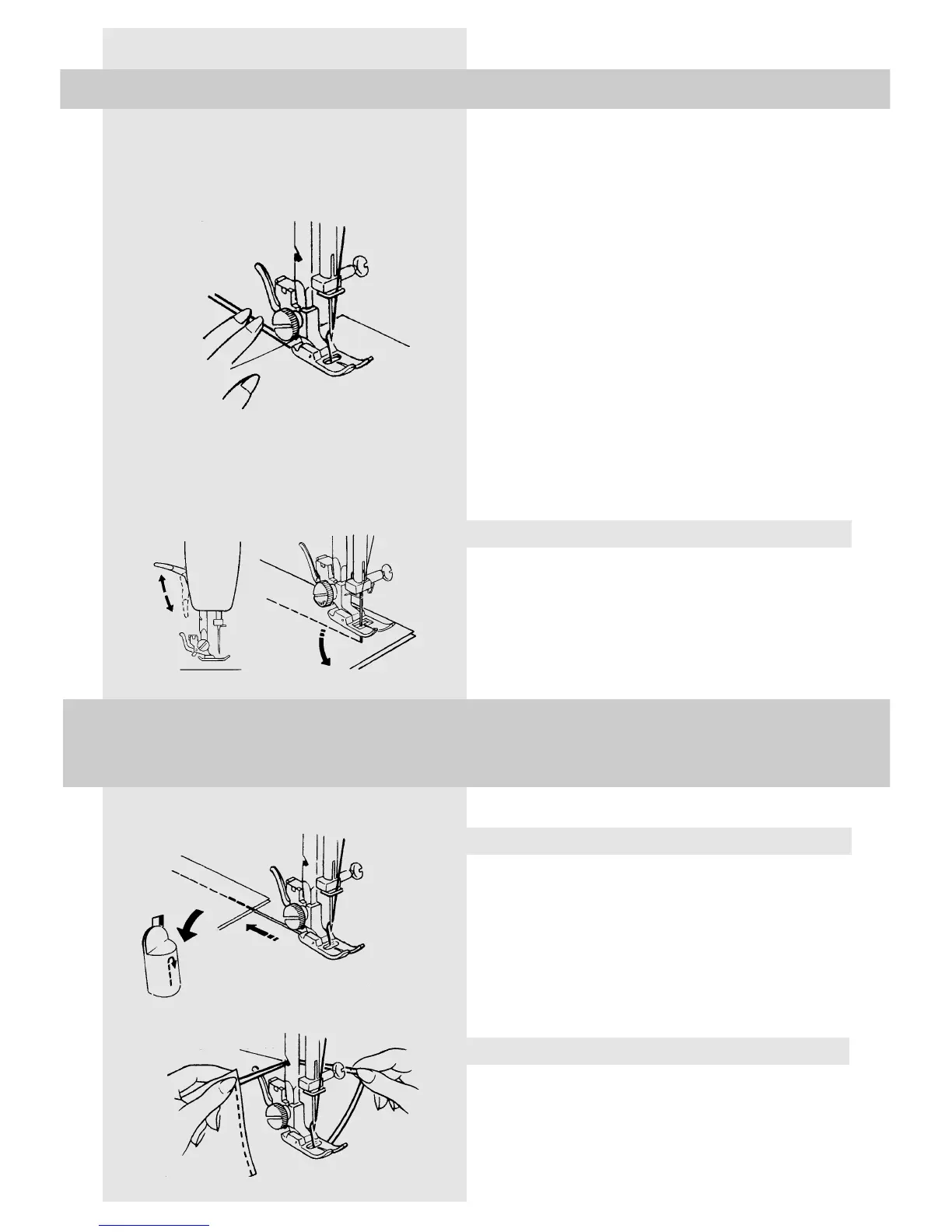The fabric will automatically be fed under the presser foot: it must not be manually stopped or