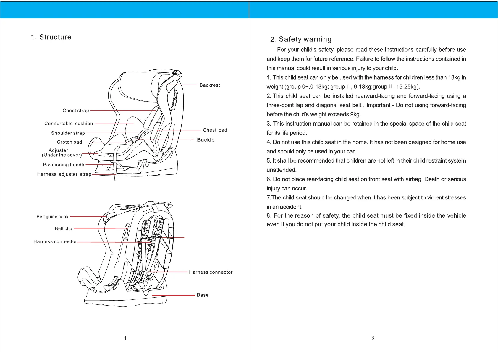 in the instructions and marked in the child restraint.