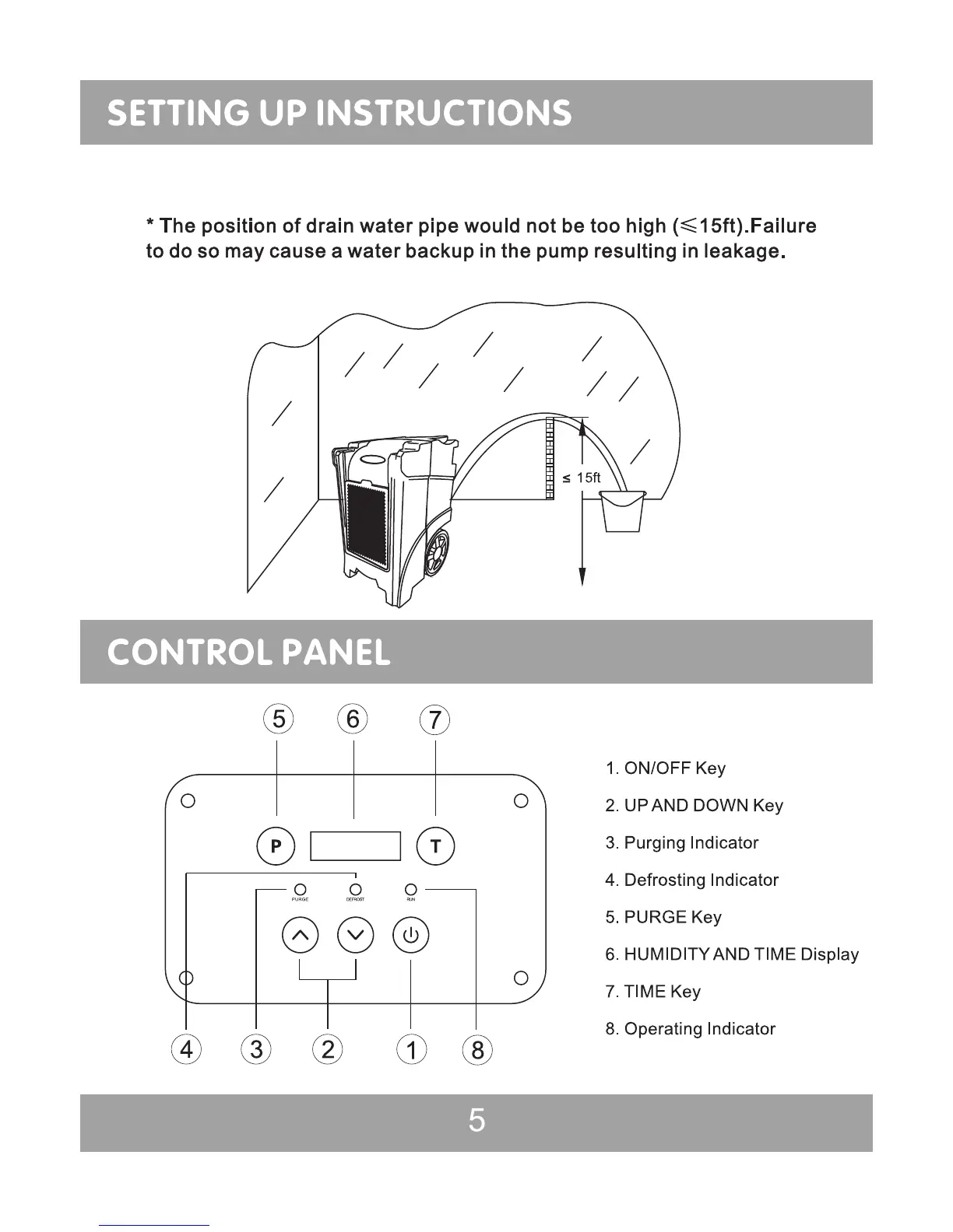 Cromtech AONE90L - Drain Water Pipe Position; Control Panel; Control Panel Layout