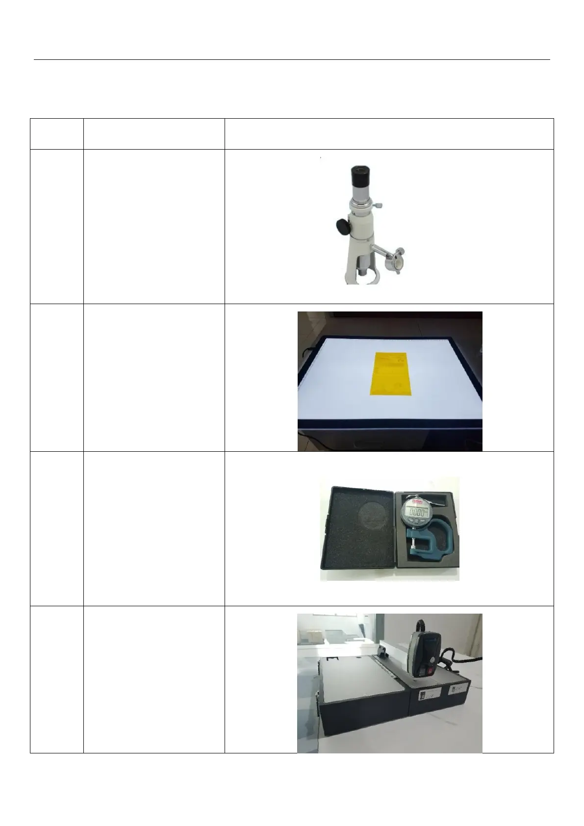 Table 7.3: Tools used during plate testing process