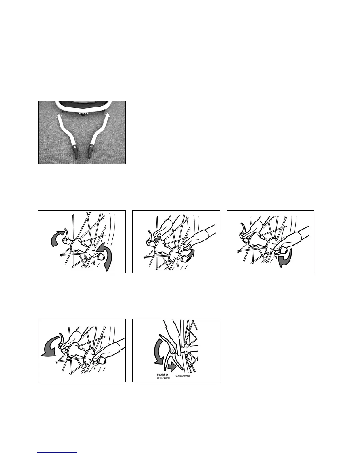 • Im Fahrradbetrieb muss das Buggyrad unbedingt abmontiert werden, da es sonst an Hindernissen hängen bleiben kann.