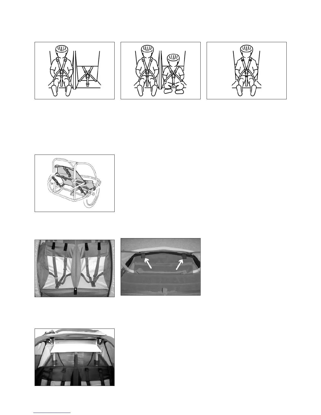 Strap your children in as shown in the drawings. Take care that the length of the individual straps is adjusted to suit the size