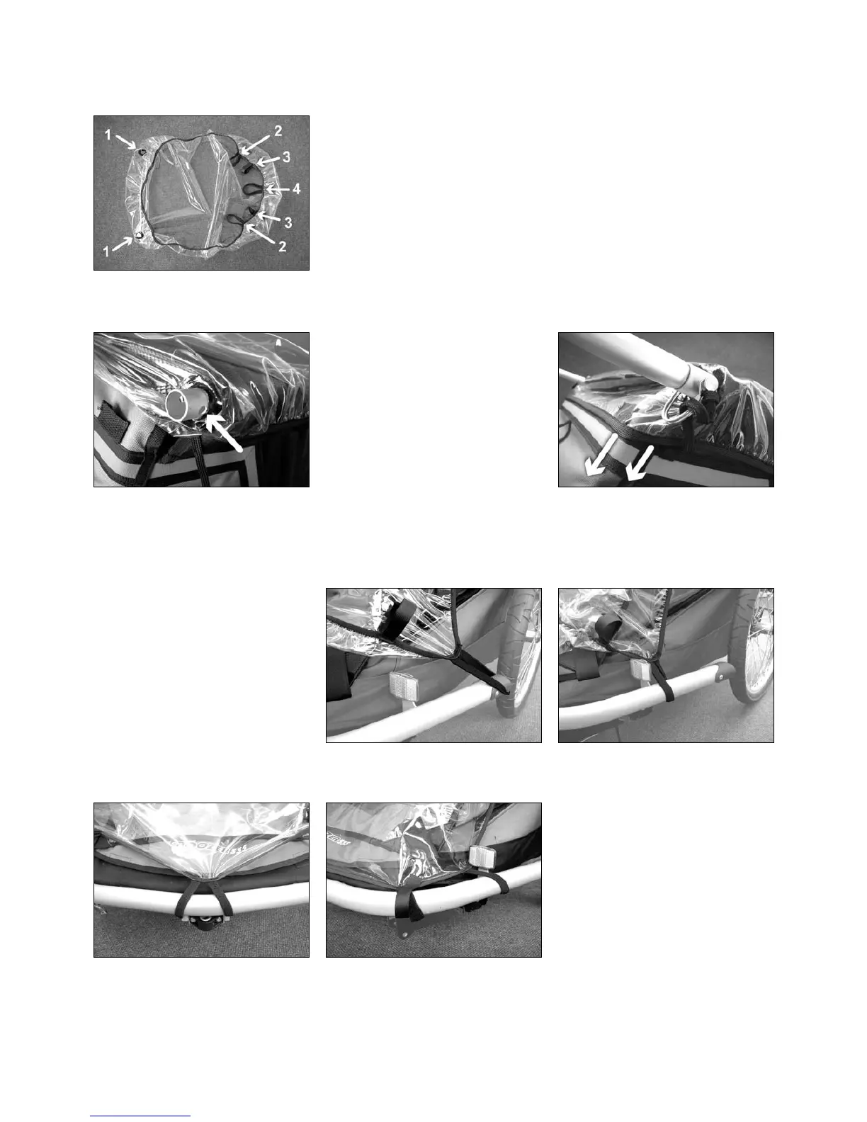 The rain cover has the following fitting attachments: