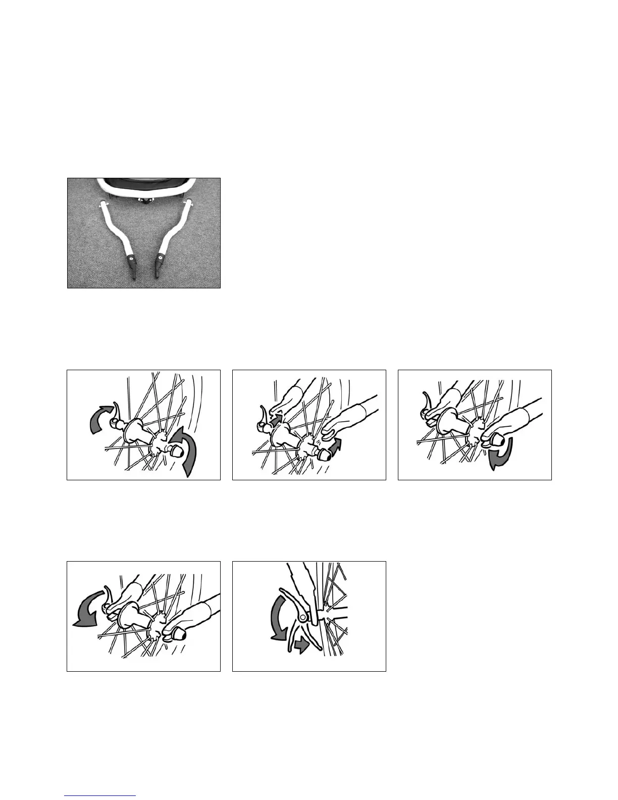 Volg dezelfde procedure voor het insteken en vergrendelen van de wielarmen als