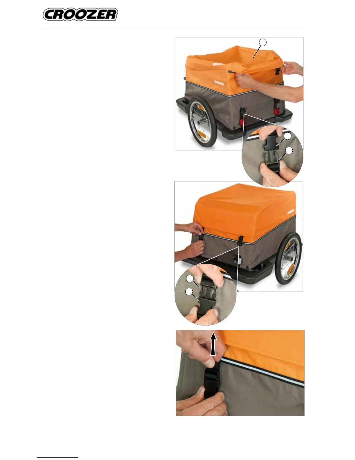 1. Pull the cover (1) over the frame. The cover must be posi-