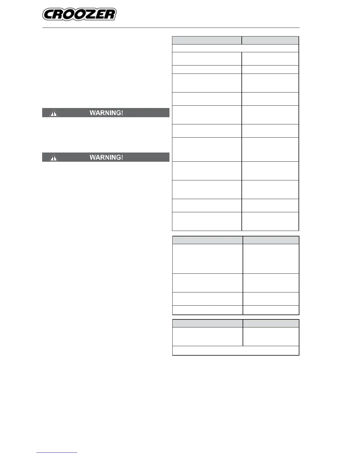 nance must be performed at regular intervals. The Croozer