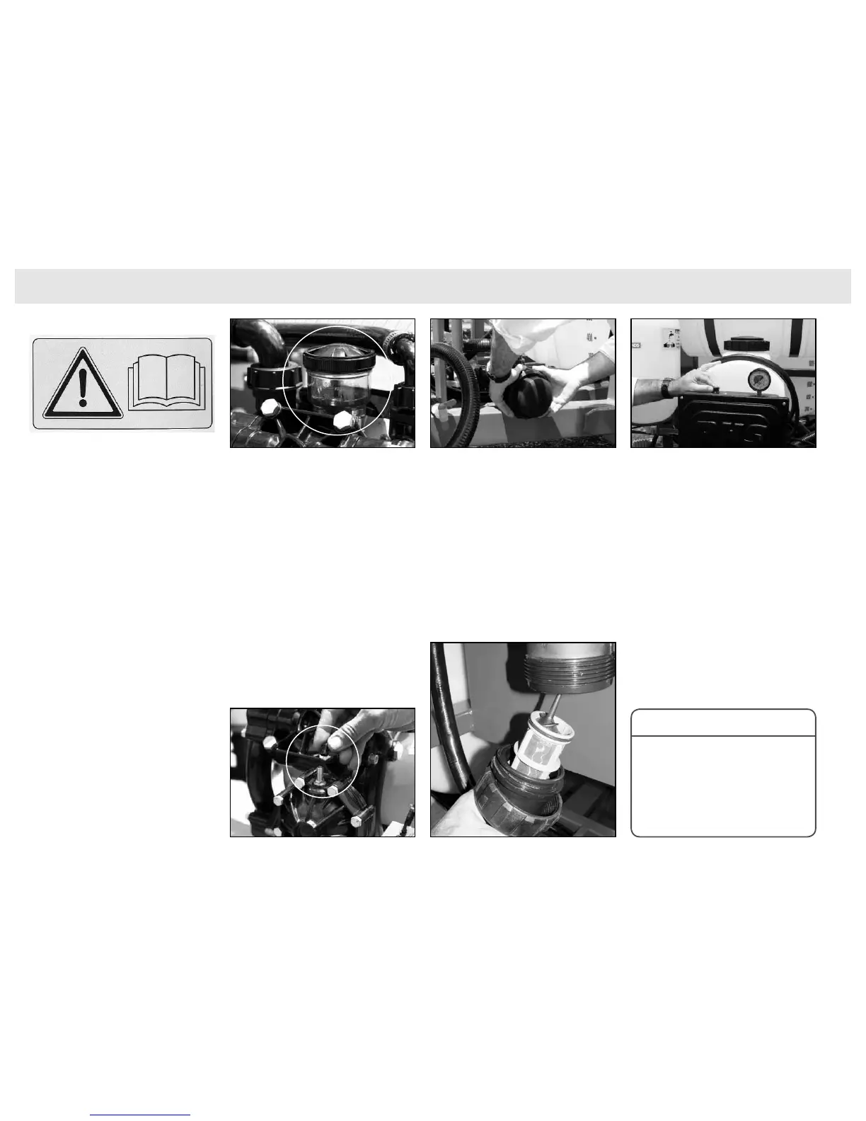 Check the foam marker operates correctly.Check the pump oil level.Read Operators’ Manuals before operating machine.