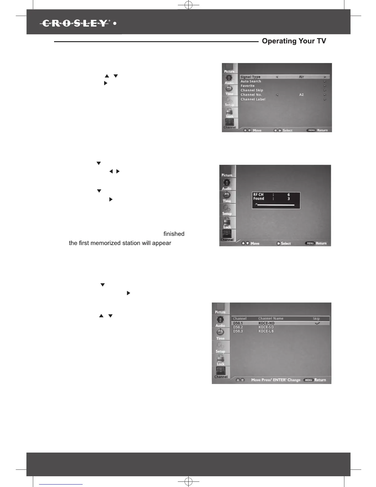 Press the “ / ”buttons to select a channel