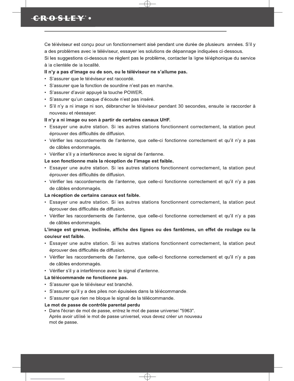 Crosley 3589 - Dépannage