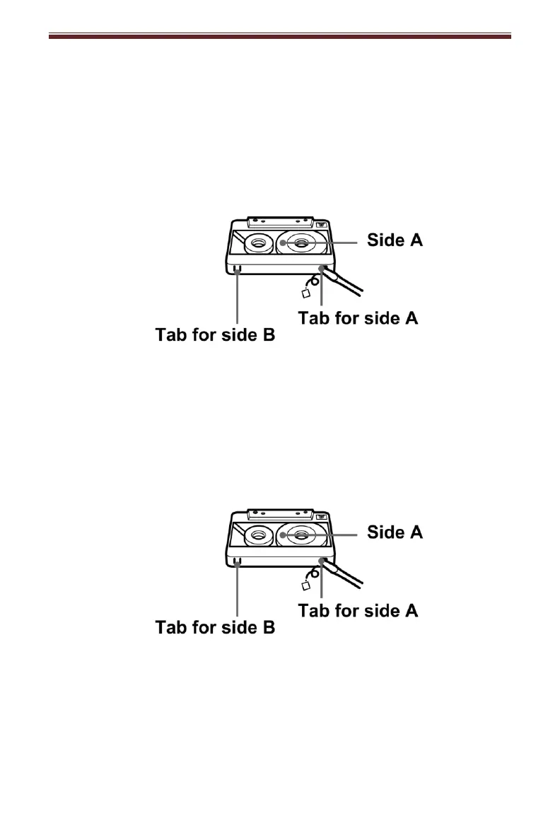 Note: To prevent accidental recording, break off the cassette tab from side A or B.