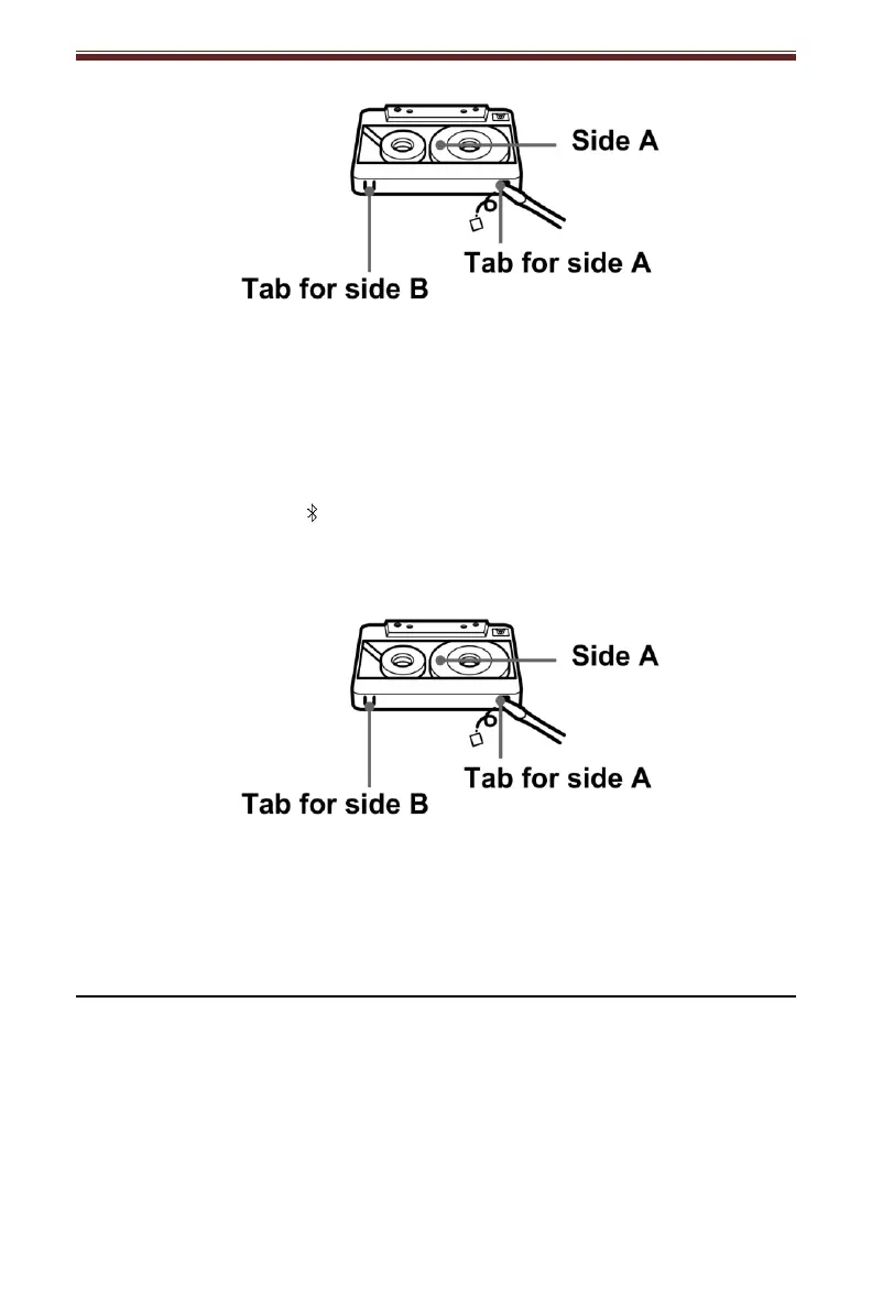 Note: To prevent accidental recording, break off the cassette tab from side A or B.