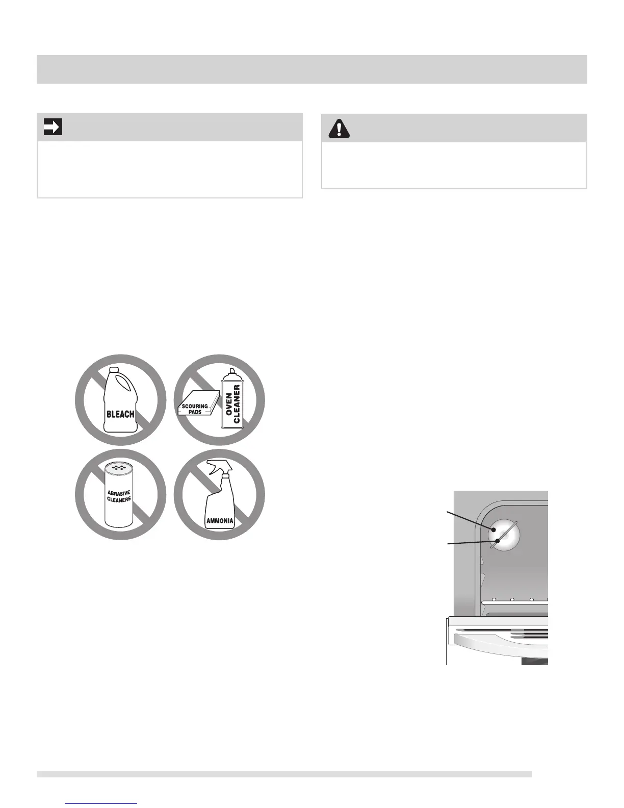 ammonia or oven cleaners, as they may etch or discolor