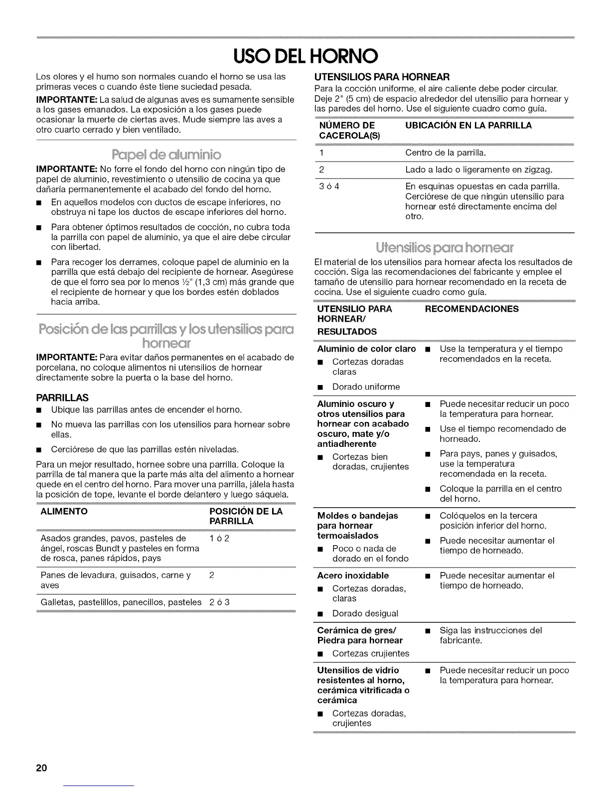 IMPORTANTE" No forre el fondo del horno con ningOn tipo de