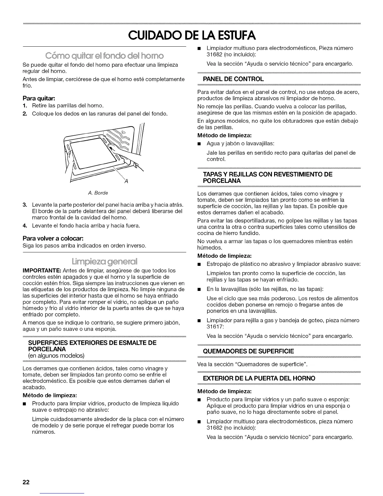 Vea la secci6n "Quemadores de superficie".