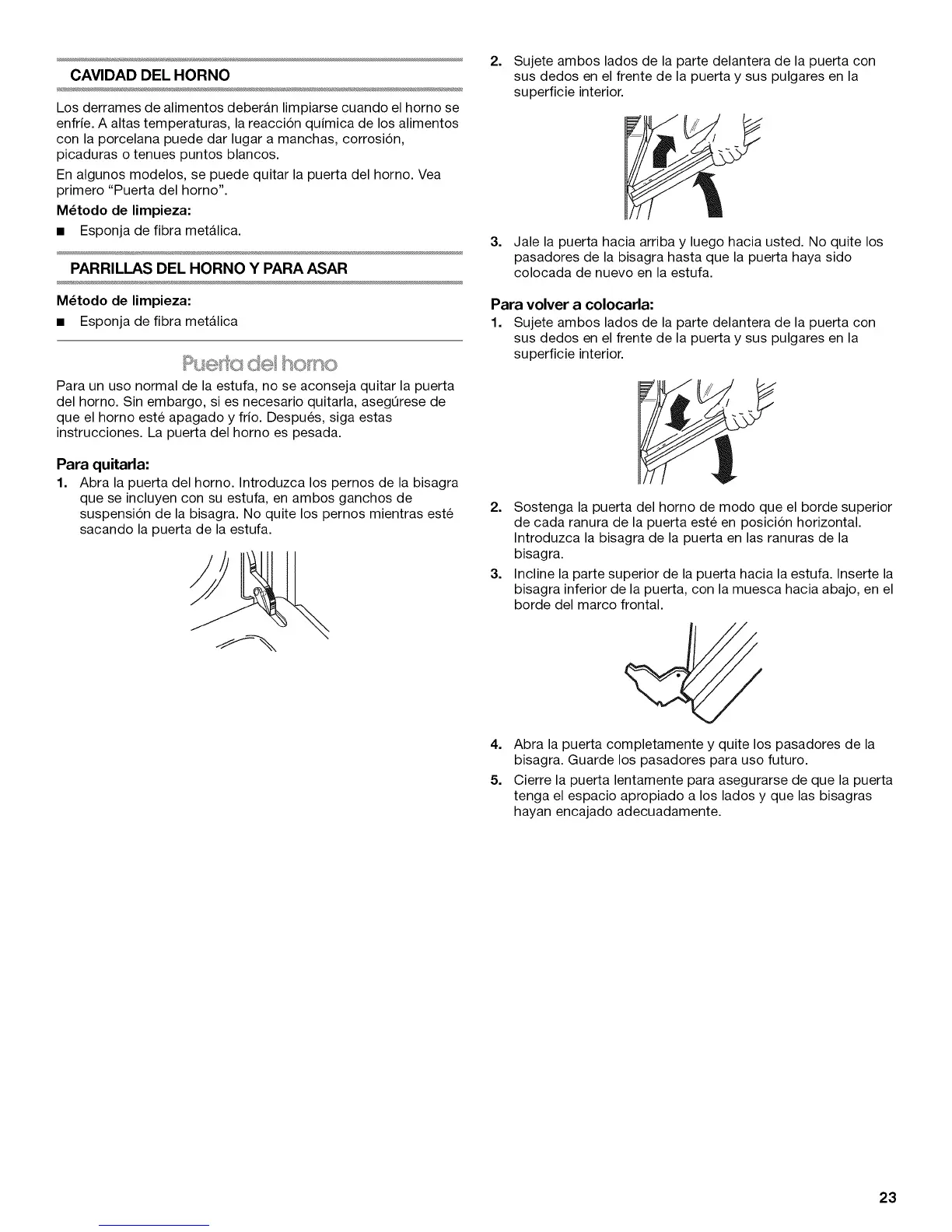 En algunos modelos, se puede quitar la puerta del horno. Vea