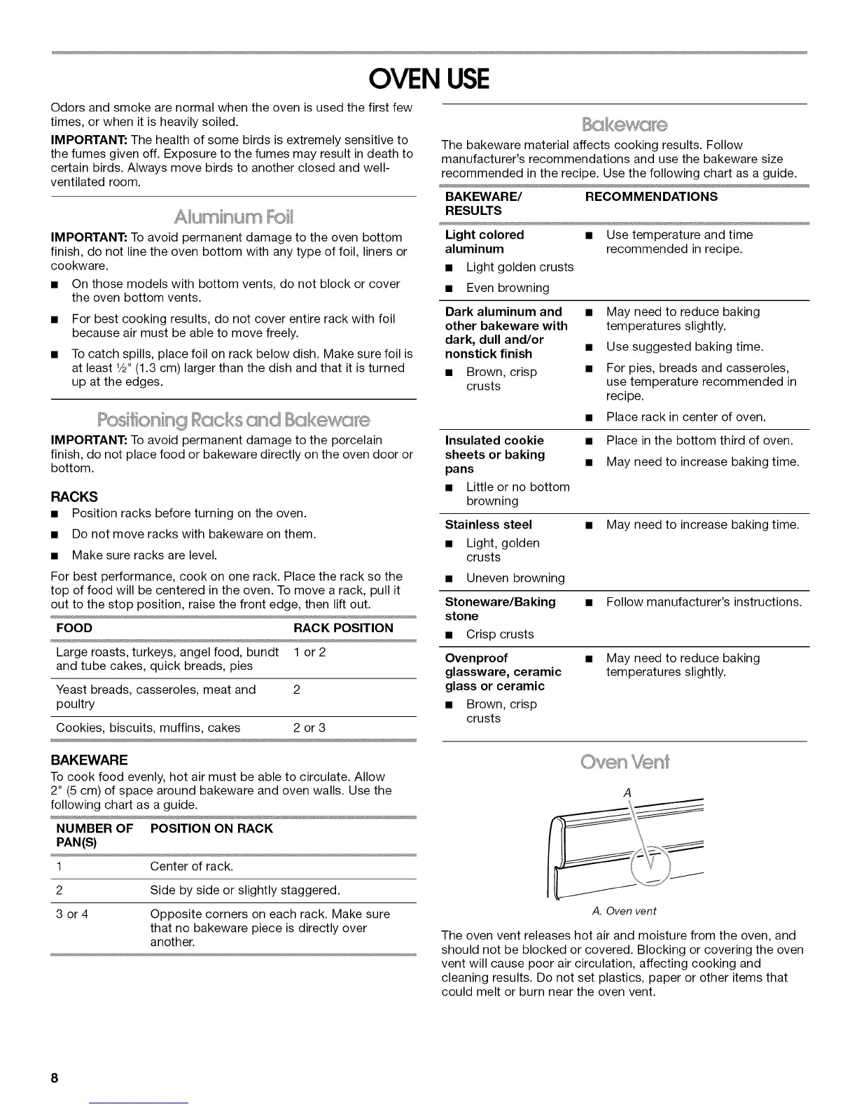 2" (5 cm) of space around bakeware and oven walls. Use the