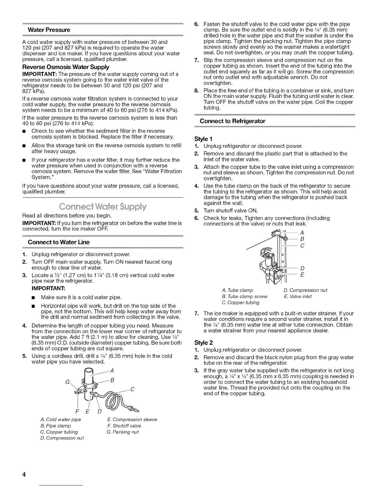 the 1/4"(6.35 mm) water line at either tube connection. Obtain